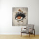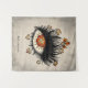 Extraño tapiz personalizado de ojos con un ilustracion digital de un ojo hembra con iris roto hecho de lava y pestañas largas terminando en flores bizarras con pétalos angustiados en un cielo gris turbio. Este fresco tapiz con un toque psicodélico y gótico tiene un texto personalizable.