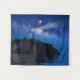 Esta impresionante foto de Getty Images muestra un faro en una isla en medio del mar por la noche con muchas estrellas y la Vía Láctea.