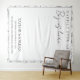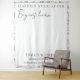 Transforma el espacio de tu ceremonia o recepción de boda con esta elegante y romántica tapicería personalizada. Este telón de fondo a gran escala presenta el sentimiento atemporal "HAPPILY EVER AFTER Begins here" en una sofisticada combinación de tipografía clásica serif y moderna escritura fluida.
