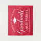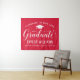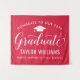Elegante letrero de fondo para fiesta de graduación felicita y celebra a tu graduado con estilo. El diseño presenta una gorra de graduado, "Graduado" en letra cursiva y texto personalizado moderno que se puede personalizar con el nombre del graduado y la escuela. Los colores rojo y blanco se pueden personalizar.