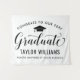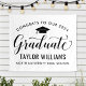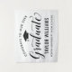 Elegante letrero de fondo para fiesta de graduación que felicita y celebra a su graduado con estilo. Diseño con gorra de graduado, "Graduado" en letra cursiva y texto personalizado moderno que puede ser personalizado con el nombre del graduado y la escuela. Los colores negro y blanco se pueden personalizar.