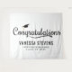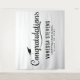 Tela moderna de graduación con letras blancas en negrita sobre fondo negro. El diseño presenta un gorro de graduación blanco con la frase "Felicidades". Personalice la pancarta de graduación azul marino agregando el nombre del graduado, el nombre de la escuela y el año de graduación. Para un aspecto más personalizado, cambie el fondo a los colores de su escuela. El cartel de graduación es perfecto para usar en su fiesta de graduación de secundaria o universidad.