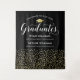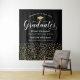 Elegante telón de fondo de la fiesta de graduación negra, dos graduados presentan un falso gorro de grado de Relieve metalizado dorado, "Graduados" en escritura blanca, y un moderno texto personalizado que puede ser personalizado con los nombres de los graduados y las escuelas. Una estampilla de oro que cae se viste de fondo - un perfecto apoyo fiesta para que los clientes se paren delante para ver las fotos con el jardín. Existen varios tamaños disponibles.