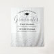 Elegante fondo blanco de la fiesta de graduación dos graduados presentan una gorra de grado de color negro, "Graduados" en escritura falsa color Relieve metalizado plateado y texto moderno personalizado que se puede personalizar con los nombres de los graduados y las escuelas. Un cuadro de confeti plateado se viste de fondo, un perfecto apoyo fiesta para que los clientes se paren delante para ver las fotos con el jardín. Existen varios tamaños disponibles.