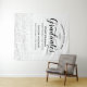 Elegante telón de fondo blanco para la fiesta de graduación dos graduados presentan un falso gorro de grado de Relieve metalizado plateado, "Graduados" en escritura negra, y un texto personalizado moderno que puede ser personalizado con los nombres de los graduados y las escuelas. Un cuadro de confeti plateado se viste de fondo, un perfecto apoyo fiesta para que los clientes se paren delante para ver las fotos con el jardín. Existen varios tamaños disponibles.
