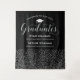 Elegante telón de fondo negro de la fiesta de graduación dos graduados presentan una gorra de grado de color blanco, "Graduados" en escritura falsa color Relieve metalizado plateado, y texto personalizado moderno que se puede personalizar con los nombres de los graduados y las escuelas. Un cuadro de confeti plateado se viste de fondo, un perfecto apoyo fiesta para que los clientes se paren delante para ver las fotos con el jardín. Existen varios tamaños disponibles.