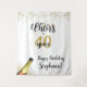 Celebra cualquier cumpleaños con este divertido y festivo cartel editable de cumpleaños CHEERS TO # AÑOS, fondo para fotos o colgante de pared en negro y dorado con una bebida de celebración de una botella de vino, cerveza o champán, tipografía de letra manuscrita moderna y tu texto personalizado. La muestra muestra la edad 40 pero se puede cambiar fácilmente a cualquier edad. Contacta al diseñador a través de Zazzle Chat o makeitaboutyoustore@gmail.com si deseas que se modifique este diseño, en otro producto o deseas artículos coordinados.