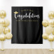 ¡Gran ceremonia de graduación o telón de fondo fiesta para todas las fotos de los graduados! El diseño es minimalista y presenta un diseño moderno de escritura caligráfica "Confelicitaciones" blanco con acento de tope de oro sobre fondo negro. Personalice el texto del personalizado con el año de clase y el nombre de la escuela.