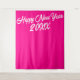 Tapiz Feliz Año Nuevo con Estilo Rosa Brillante y Blanco