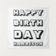 Tapiz Feliz Cumpleaños negro blanco nombre personalizado