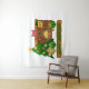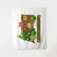 Tapiz Feliz Navidad cerca de la chimenea de fuego árbol
