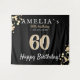 Fiesta de 60 cumpleaños telón negro dorado. Tapiz de cumpleaños número 60 para él o ella. Use los tapices como telón de fondo para la fiesta de cumpleaños número 60. Personalice con su texto.