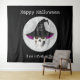 Crea tu propio fondo para fotos en la fiesta de Halloween con esta escena de tapiz espeluznante de "Feliz Halloween". El diseño presenta una calavera de bruja aterradora que lleva un sombrero puntiagudo negro de "Truco o trato" y una luna llena en un fondo negro. Las citas de Halloween "Feliz Halloween" y "Te hechicé" están escritas en letra blanca. Este telón de fondo de tapiz está disponible en varios tamaños diferentes. Se muestra aquí en tamaño extra grande.