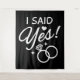 Texto lindo y juguetón de "¡Dije que sí!" con gráfico de doble anillo. Úsalo tal cual o añádele tu texto. Ideal para despedidas de soltera, fiestas de compromiso o sesiones de fotos de boda.