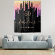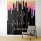 Una tapicería de cumpleaños número 50 (o cualquier edad) moderna y glamurosa. Un fondo negro clásico decorado con gotas de brillo falso de colores arcoíris, aspecto de pintura que gotea en morado, rosa y dorado. Con el texto: 50 y fabuloso. Personaliza y añade un nombre. Texto de color dorado. La palabra Fabuloso está escrita con un estilo de letra manuscrita moderna con florituras. Perfecto como letrero de bienvenida, decoración de pared o fondo para fotos.
