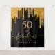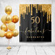Una elegante y glamurosa tapicería para cumpleaños 50 (o cualquier edad). Un fondo negro clásico decorado con gotas de brillo dorado falso, aspecto de pintura goteante. Con el texto: 50 y fabulosa. Personaliza y agrega un nombre. Texto de color dorado. La palabra Fabulosa está escrita con un estilo de letra manuscrita moderna con florituras. Se puede utilizar como pancarta de bienvenida, decoración de pared de fiesta o como fondo para fotomatón.
