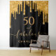 Una elegante y glamurosa alfombra para el cumpleaños número 50 (o cualquier edad). Un fondo negro clásico decorado con gotas de brillo dorado falso, con un efecto de pintura que gotea. Con el texto: 50 y fabulosa. Personaliza y añade un nombre. Texto de color dorado. La palabra Fabulosa está escrita con un estilo de letra manuscrita moderna con florituras. Se puede utilizar como pancarta de bienvenida, decoración de pared para fiesta o como fondo para fotomatón.