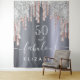 Una tapicería de cumpleaños número 50 (o cualquier edad) moderna y glamorosa. Un fondo de metal plateado falso con aspecto de papel de aluminio decorado con gotas de brillo rosa oro, rosa y plateado falso, con un efecto de pintura que gotea. Con el texto: 50 y fabulosa. Personaliza y añade un nombre. Texto de color blanco. La palabra Fabulosa está escrita con un estilo de letra manuscrita moderna con florituras.