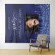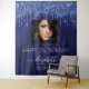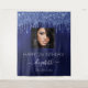 Una alfombra para una fiesta de cumpleaños número 21 femenina y glamorosa (o de cualquier edad). Un fondo de color azul marino con gotas de brillo azul falso. El color de fondo azul es irregular. Personalice y agregue su propia foto de alta calidad de la cumpleañera. El texto: el nombre está escrito con un estilo de letra manuscrita moderna con florituras. Para mantener los florituras, simplemente elimine el nombre de muestra, deje los espacios o emojis delante y detrás del nombre. Plantillas para un nombre, edad 21 y una fecha. Se puede utilizar como decoración de pared para la fiesta o como fondo para una cabina de fotos.