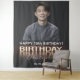 Tapiz Fiesta de Cumpleaños Luz de Neón Dorada Personaliz