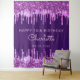 Una alfombra para una fiesta de cumpleaños femenina y glamurosa de 10 años (o cualquier edad). Un fondo púrpura intenso con gotas de brillo falsas rosadas y púrpuras. Personaliza y agrega un nombre, edad 10 y una fecha. El texto: El nombre está escrito en rosa con una fuente moderna de letra manuscrita. Se puede utilizar como pancarta de bienvenida, decoración de pared para la fiesta o como fondo para el fotomatón.