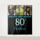 Fiesta de 80 Cumpleaños, Brillo Azul Turquesa y 3 Fotos es una hermosa tapicería de fondo que es la manera perfecta de capturar recuerdos al celebrar sus ochenta años.