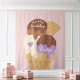 Diseñado para coincidir con nuestras invitaciones de cumpleaños para niños de helado sundae, este fondo de fiesta personalizado presenta un cono de tres bolas en colores pastel frescos con "Feliz Cumpleaños [Nombre]" en letras estilo vintage retro lindas.