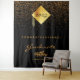Un fondo negro chic. Decorado con confeti dorado y un gorro dorado falso moderno y abstracto, sombrero, borla con el año dentro. Texto: ¡Felicidades! El texto: Graduado, y el nombre están escritos con un estilo de letra manuscrita moderna grande. Para él y ella. Un banner, decoración de fiesta, o fondo de fotomatón para una fiesta de graduación de 2023 (o cualquier año).