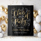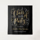 Elegante telón de fondo para fotos de fiesta de graduación con un diseño de lámina de oro falso en escritura con hermosos acentos de volutas. Incluye texto elegante personalizado en oro y blanco que se puede personalizar con el nombre del graduado y un mensaje de Felicitaciones. Nota, el fondo negro se puede personalizar.