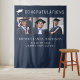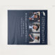 Elegante telón de fondo azul oscuro para cabina de fotos de fiesta de graduación para celebrar al graduado con "Felicidades" en tipografía blanca grande, una ilustración de un gorro de graduación, un collage de tres fotos y el nombre, año de graduación y nombre de la escuela en tipografía blanca moderna. Los colores del fondo y del texto se pueden editar para que coincidan con los colores de su escuela seleccionando "personalizar más".