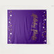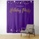 Configure una estación de selfies que sirva como letrero de bienvenida en su próxima Fiesta de Navidad Corporativa. Letra "fiesta de Navidad" dorada para coincidir con las invitaciones de esta colección. Lunares de confeti dorados y blancos sobre un fondo morado elegante.