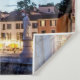 Canal con estatuas en la plaza de Prato della Valle en Padova después de la puesta de sol, Italia, después de la lluvia