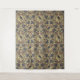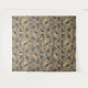 Este tapiz presenta cuervos, libélulas y escarabajos rodeados de flores y hojas en tonos malva y gris sobre un fondo de color tostado.