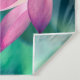 Esta foto ofrece un primer de la flor del lirio de agua del loto con las hojas en el fondo.
