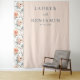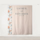 Este elegante fondo de boda presenta un suave fondo de melocotón con un borde floral vertical de grandes rosas en tonos de melocotón y crema, creando un marco romántico. El diseño incluye texto personalizable en una fuente serif limpia, con la palabra "y" estilizada en cursiva para añadir elegancia. El estilo general es clásico y sofisticado, perfecto para ocasiones formales, con un ambiente cálido e invitador realzado por la paleta de colores armoniosa y los suaves acentos florales.