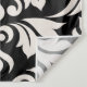 Arte damasco de influencia vintage diseño de grandes patrones de superficie en color crema en un fondo negro.