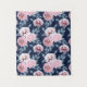 Tapiz Flores blancas y rosas sobre azul oscuro.