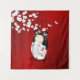 Tapiz Flores de cerezo blanco rojo de muñeca Kokeshi