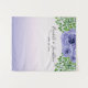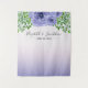Esta cortina de fondo para bodas ofrece un hermoso gráfico de acuarela morada de flores acentuadas con follaje verde y es una propaganda de fotos perfecta. El gráfico aparece en la parte superior y el fondo es un gradiente de morado oscuro. Se utiliza texto de estilo manuscrito para los nombres de la novia y el novio y la fecha de su boda.