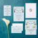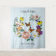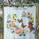 Un fondo azul claro con flores silvestres, setas, margaritas blancas y mariposas monarcas. Perfecto para las parejas que aman el exterior y el encanto rústico.