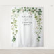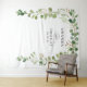 Tapiz de fondo de boda arco de hojas verdes de eucalipto cabina de fotos.