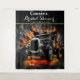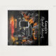 Tela de fondo para cabina de fotos de desayuno nupcial de fuego de fiesta de Hot Rod tiene una llama naranja que arde alrededor de un auto viejo. En la parte inferior del medio y un fondo negro con un lugar para poner todo el texto de su invitación.