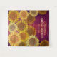 Pintura de acuarela elegante de girasoles con textura de madera rústica púrpura. Nombre y fecha para personalizar.