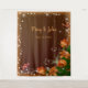 Tapiz Fondo de boda floral naranja de madera oscura rúst