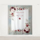 Hermoso, elegante y moderno, este impresionante fondo para fotos de boda cuenta con un fondo de acuarela azul polvoriento y elementos botánicos florales de color rosa claro y burdeos marsala cuidadosamente digitalizados y pintados a mano. Parte de un conjunto a juego. Copyright Elegant Invites, todos los derechos reservados.