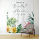 Este elegante fondo de cabina de fotos de ducha de novia con flores tropicales de acuarela se puede personalizar con su información en tipografía chic. Diseñado por Thisisnotme©