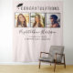 Elegante tapiz de fondo de cabina de fotos de graduación en rosa para ella con "Felicidades", una ilustración de una gorra de graduado, un collage de 3 fotos, su nombre en una fuente de moda y su año de graduación y nombre de la escuela en letras modernas simples.