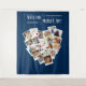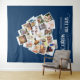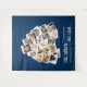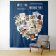 Fondo de colaje de fotos con forma de corazón con 20 de tus fotos favoritas. ¿Te casas conmigo? está escrito en caligrafía circular y tus fotos se muestran en formato cuadrado sobre fondos de instantáneas en un montaje de imágenes en forma de corazón. El diseño tiene un color de fondo azul, que puedes editar.