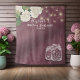 Plantillas de fondo para cabina de fotos de ducha de novia / celebración de boda - Letra elegante, jarras de Mason, flores de hortensia y luces de cuerda sobre fondo de lino floral rojo borgoña. ¡Un diseño perfecto para tu gran día! Todo el estilo de texto, colores y tamaños se pueden modificar para adaptarse a tus necesidades.