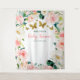 Esta encantadora tela de fondo de fiesta de bebé con mariposas doradas y rosadas es perfecta para una fiesta de bebé niña. Corona floral de acuarela rosa y blanca femenina, confeti de lámina dorada falsa y mariposas decoran este diseño chic. Este fondo funciona muy bien como fondo de fiesta de bebé virtual. Personalice hoy utilizando los campos de plantilla en línea.